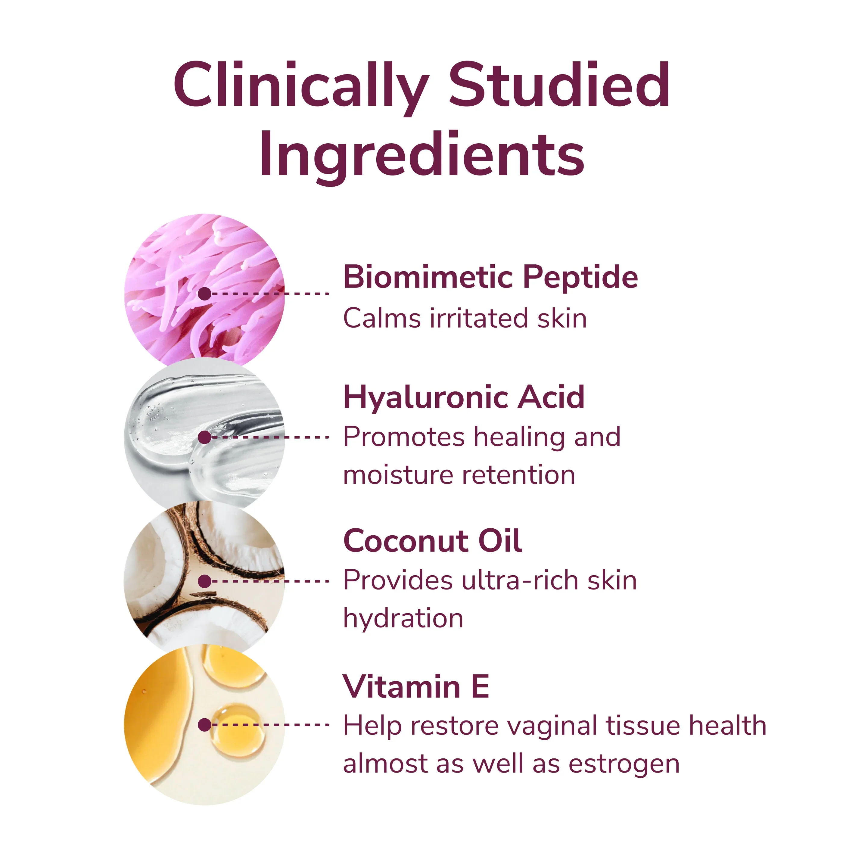 - Use daily to feel dramatic improvements in vaginal & vulvar dryness